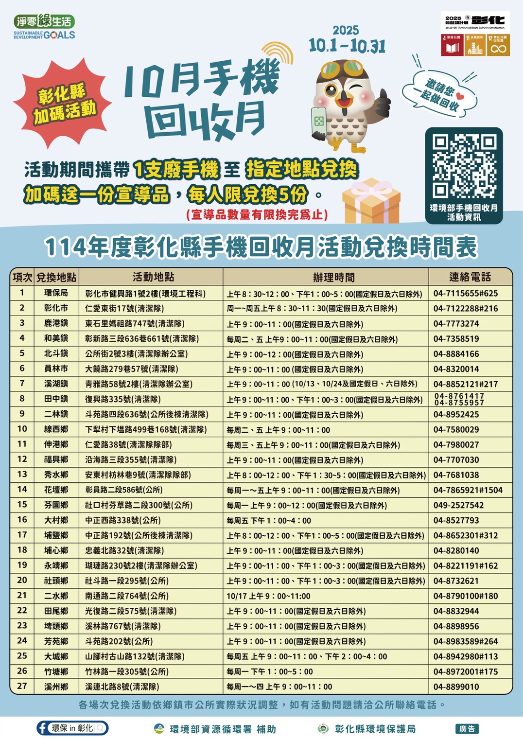●活動內容|10/1~10/31可於各鄉鎮市指定時間地點做回收兌換好禮🎁